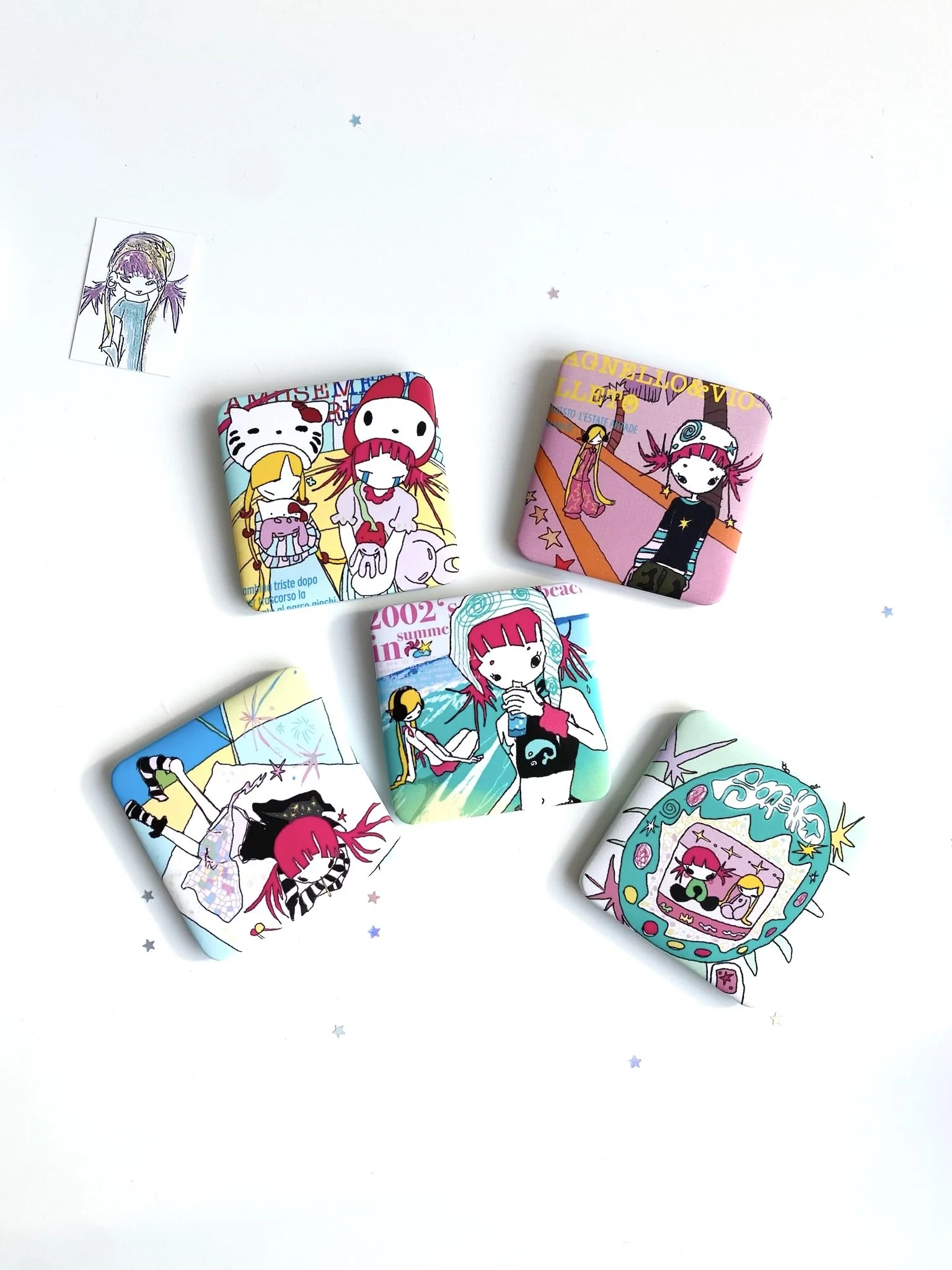 Product Information : Cute original hand-drawn tinplate badge with matte film